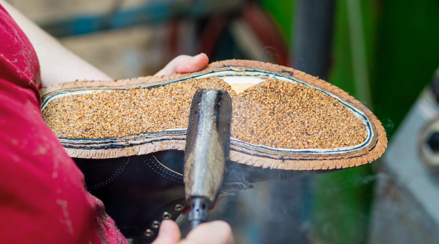 The essence of the Goodyear Welt construction is that the upper is molded on the last and secured by sewing a strip of leather or "welt" over the upper and insole. The cavity formed by the welt is then filled with a natural cork mixture that is highly flexible and elastic, giving the welt shoe its unique comfort. In addition to providing insulation, the cork component optimizes comfort when placing the foot by creating a footprint, making the shoe highly abrasive and durable.