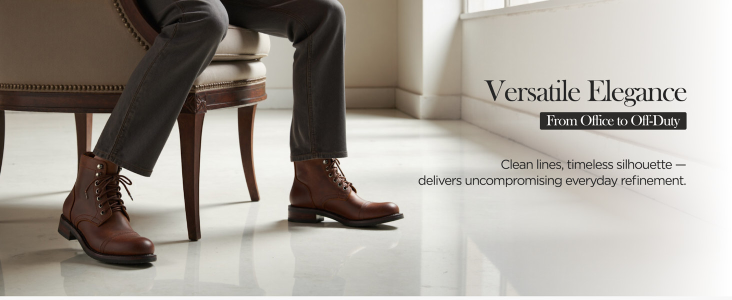 · The Dress Boot: For a more polished appearance, consider a sleek leather boot that bridges the gap between casual and formal, perfect for pairing with chinos or dark jeans.