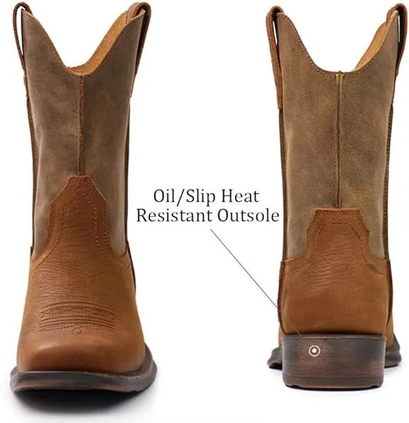 Rancher labor boots are unique owing to their design, durability, and practicality for ranchers. Rancher work boots are designed for agricultural and livestock situations. They have higher shafts to protect legs from dirt, wetness, and sharp things. Thicker, stronger soles provide better traction on uneven or slippery farm and ranch terrain. Numerous men's rancher work boots have steel or composite toe caps for further protection during heavy duties.