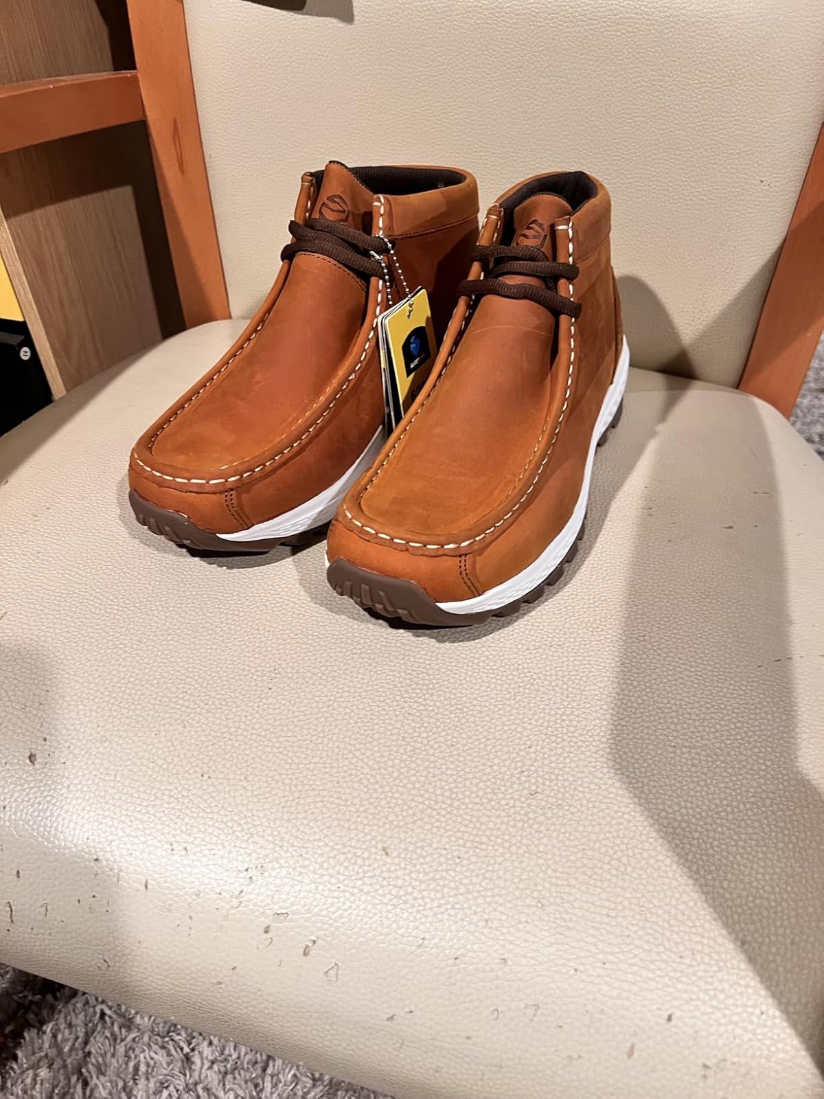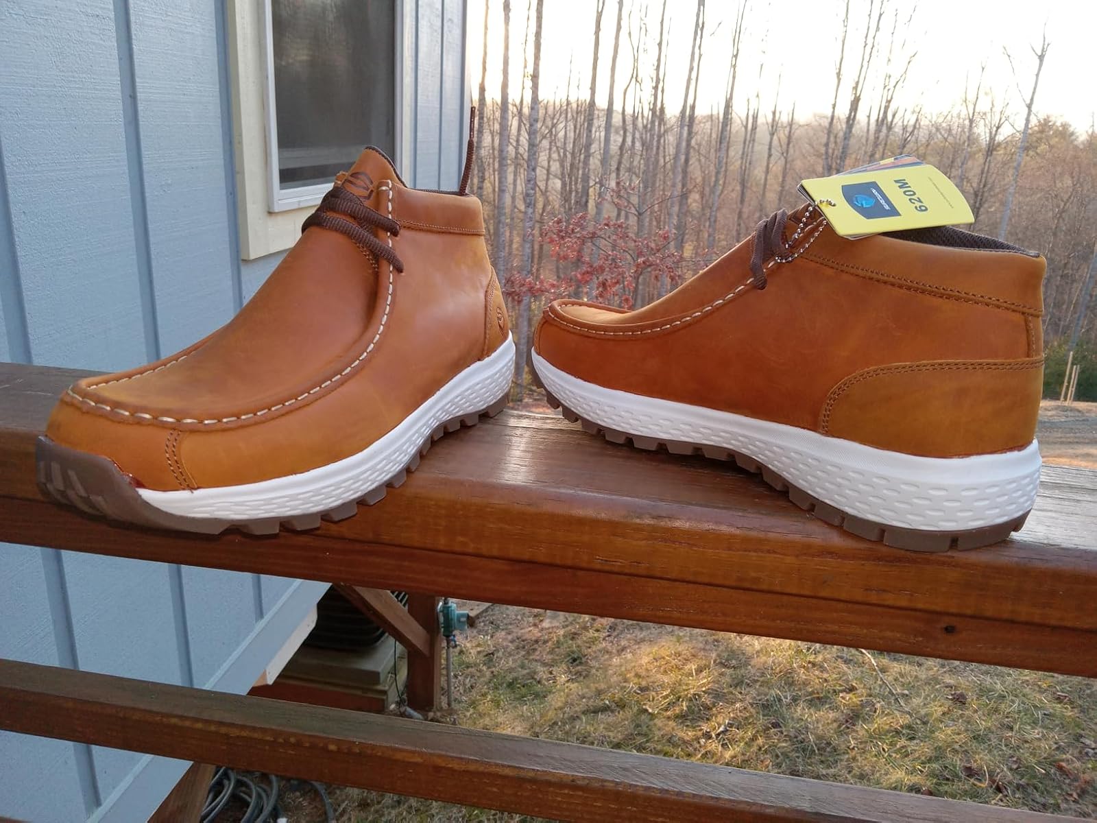 I am really quite happy with the New SUREWAY Men's Leather Moc Toe Chukka Boots. I have Wide Feet, Finding Shoes that fit can be quite challenging at times. I was pleasantly surprised with these Boots, The Size Chart is Spot-On Perfect, the Soles are Non-Slip too. The Shoes are Very Comfortable right out of the box. I gave the SUREWAY Men's Leather Moc Toe Chukka Boots a Full Five Star Rating Across the Board. They are Durable, Well Designed, and are Very Reliable to name a few of them.