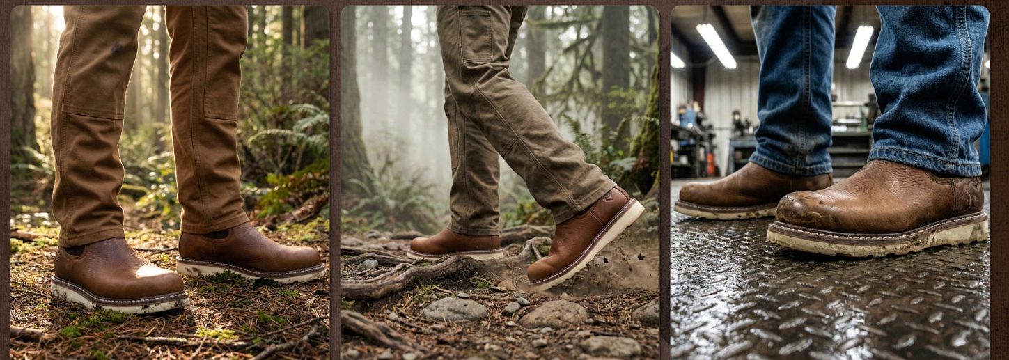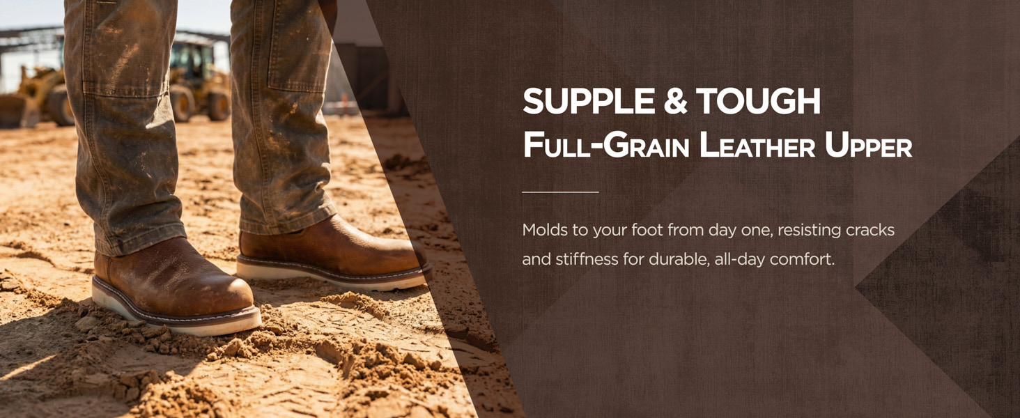 SUREWAY uses 2.5mm thick full-grain leather across their slip-on lineup . This is the gold standard for work boots—durable, naturally water-resistant, and capable of molding to your foot over time.