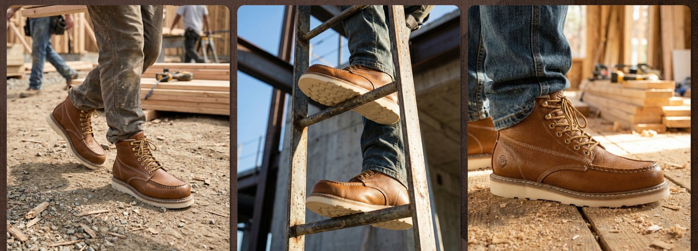 During his holiday break, Mike still wore the work boots that John had given him. However, John unintentionally noticed his father's feet were damp and there were two blisters between his toes. John exclaimed, realizing that work boots needed more than just a good appearance. His father's job in construction required high-quality work boots to protect their feet because construction sites had harsh conditions. Construction workers frequently had to climb heights, tread on uneven terrain, and even risk slipping during rainy days. The feeling of coming home with soaked shoes was something that I believe everyone would find dreadful.