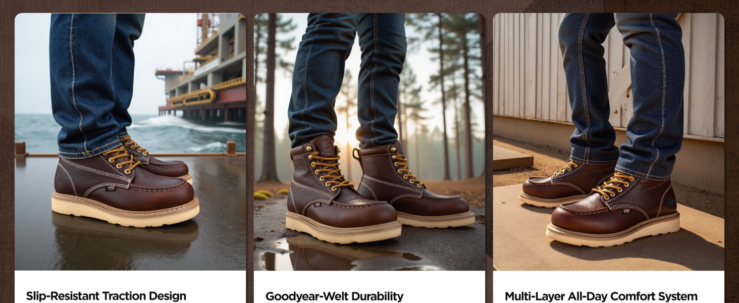 surewayworkboots are designed with safety features that protect your feet from various hazards commonly found in work environments: