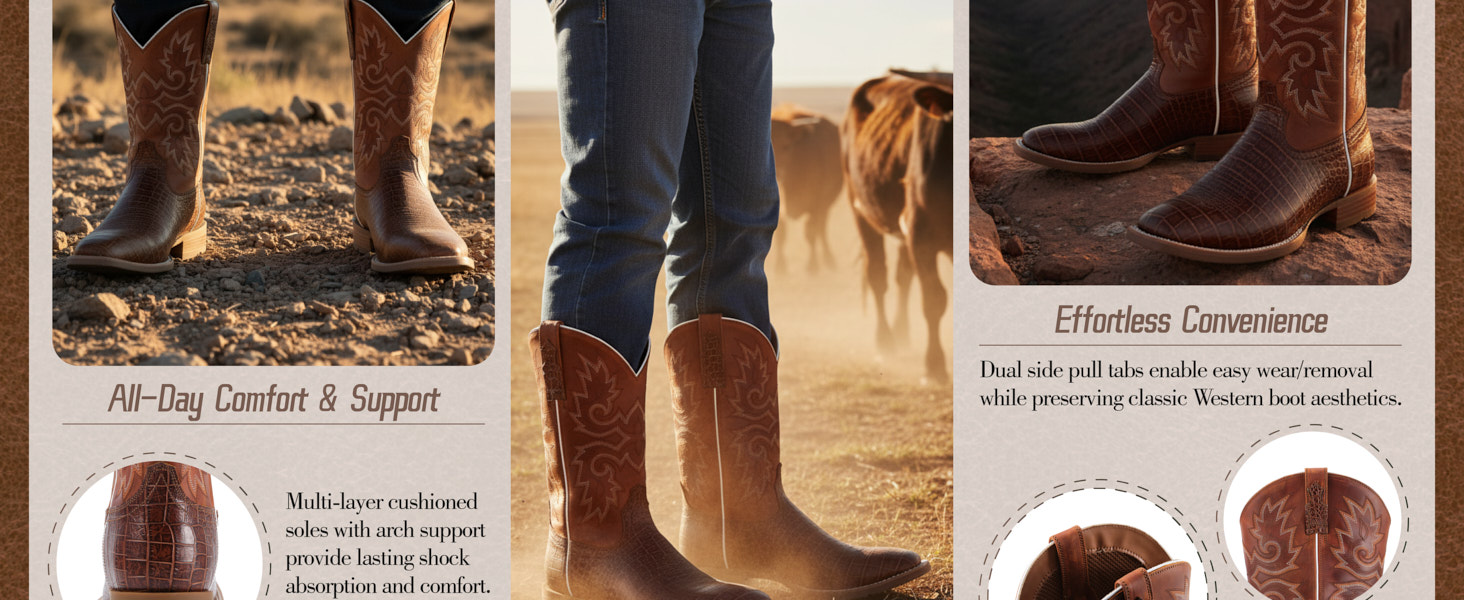 SUREWAY Stylish and Comfortable Men's Rugged Square Toe Western Chelsea Cowboy Boots