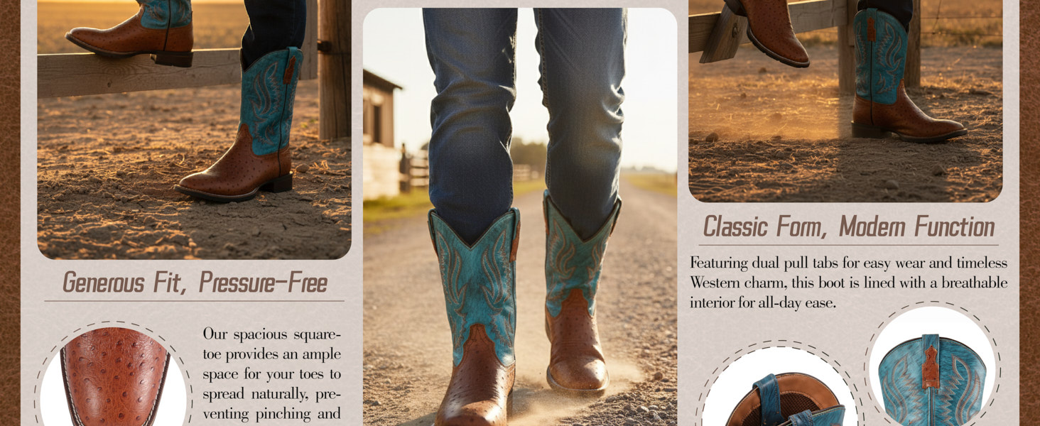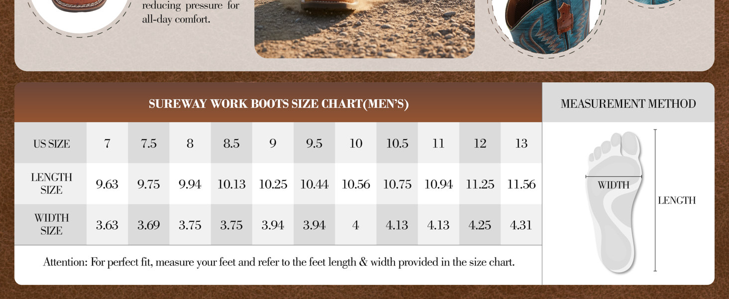 SUREWAY Western Boots Men’s Square Toe Work Boot