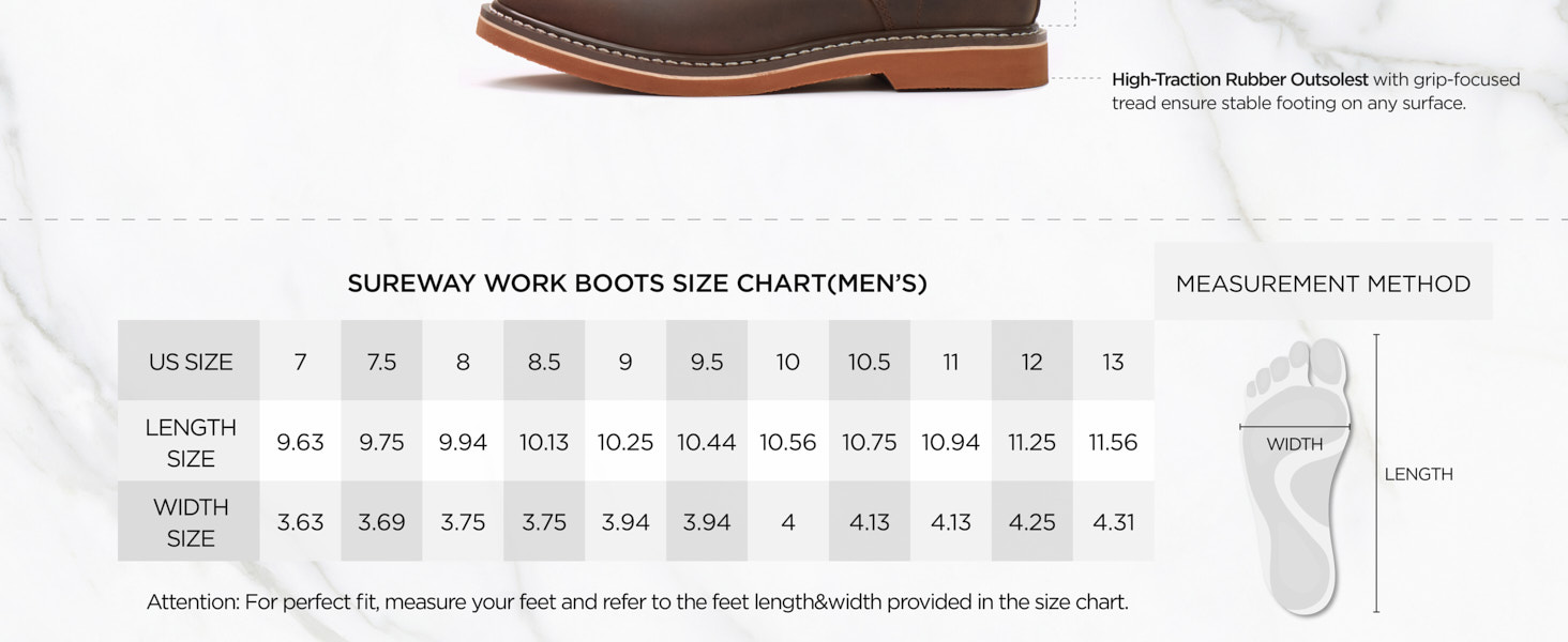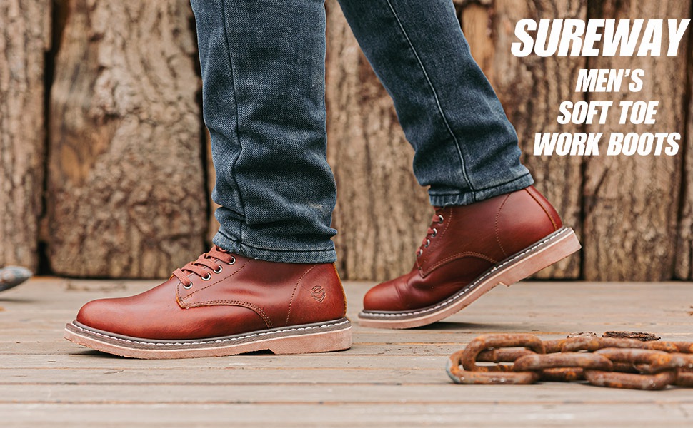 SUREWAY Men's 6" Casual Soft toe Work Boots - Brown : full grain leather upper is seamlessly fused to outsole, making the work boots durable enough to hold up to the rigger of hard labor. Several days break in needed to soften up the leather.Wear them in any weather to keep your feet comfortable all day long.