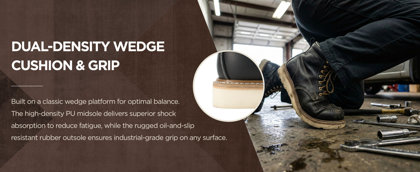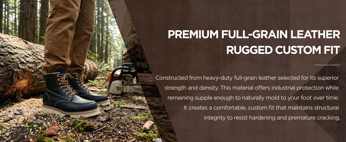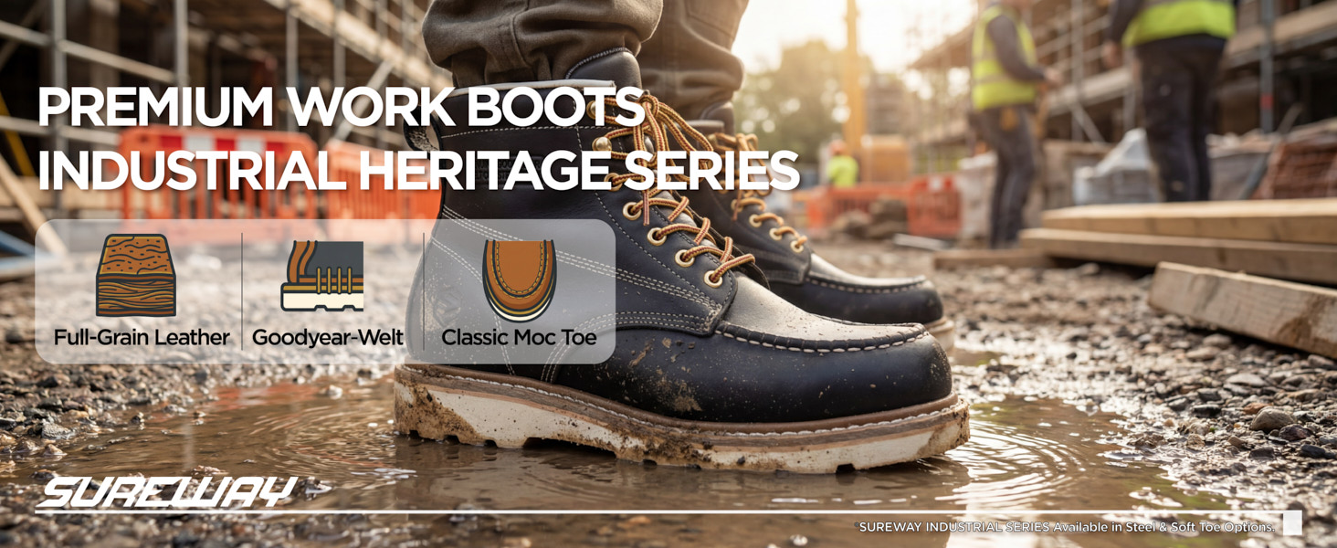SUREWAY men's work boots use premium full-grain leather upper, perfect blend of strong and soft, makes the boots more resistant to hardening&cracking and hold their shape longer.