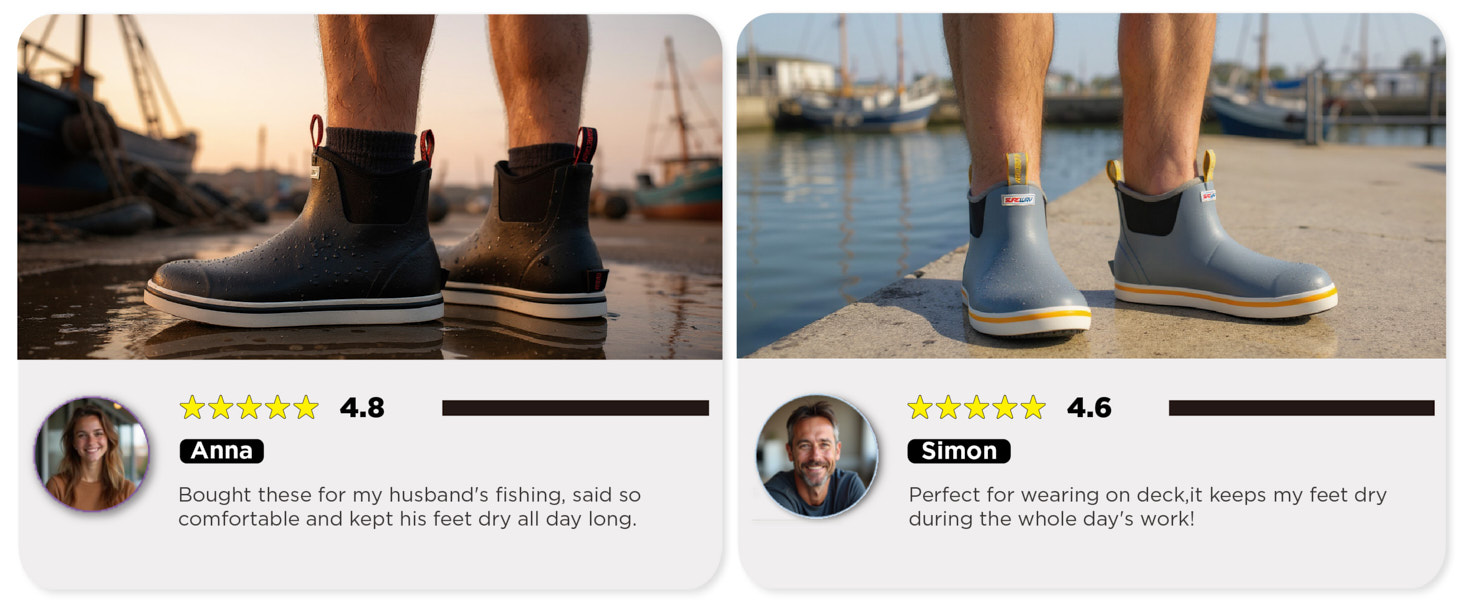 [100% Waterproof Rain Boots & Durable Construction]Crafted with high-quality neoprene and rubber materials, our deck boots are built to keep you completely dry and protected from water. The reinforced outsole and rugged upper provide exceptional durability against wear and tear from longterm use on boats, docks, and rough terrains.