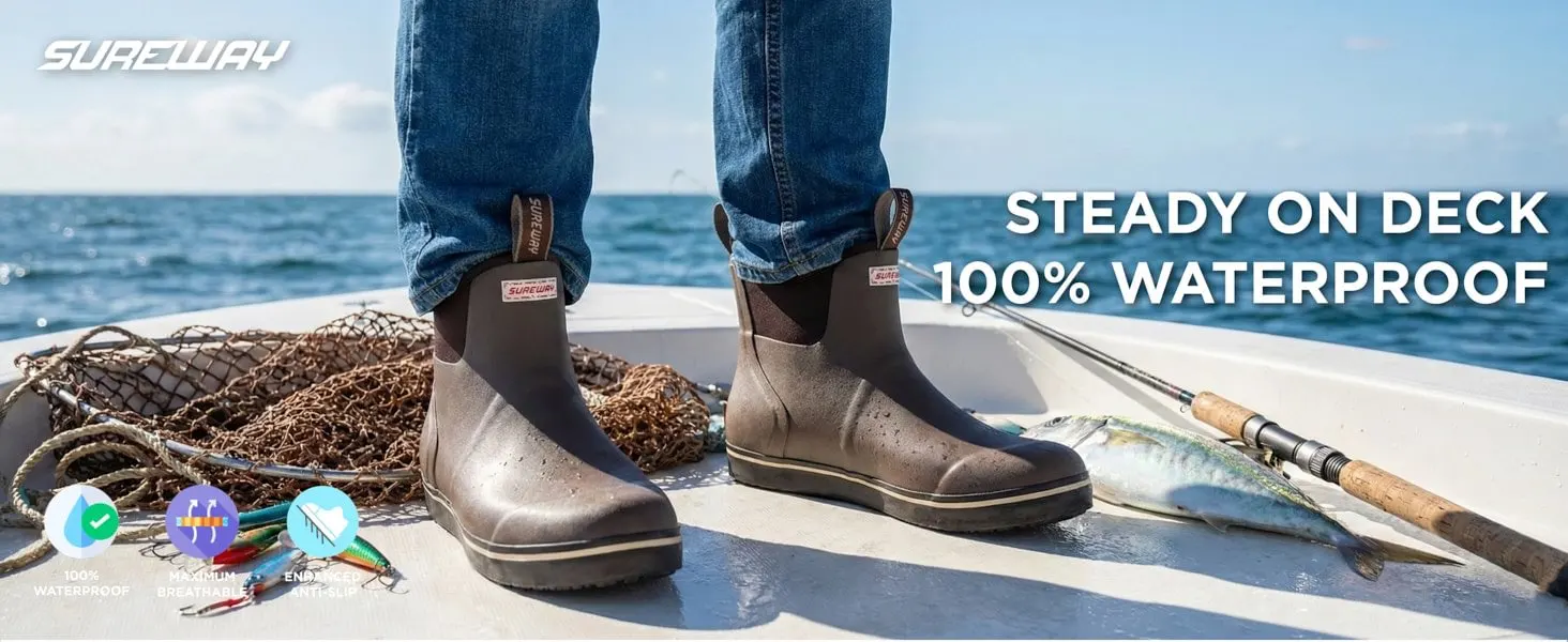 【100% waterproof protection】SUREWAY deck boots are built specifically for sport and recreational fishermen who spend long periods of time on their feet. Fishing deck boot is constructed with hand-layed durable neoprene rubber, and has 100% waterproof performance and extreme durability, withstands cold in saltwater.