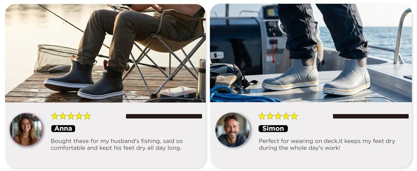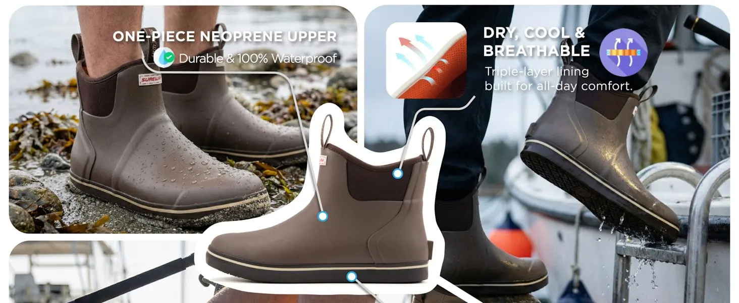【Fishing Perfect Choice】The 6" ankle fishing deck boot is a great option for any on-the-water athlete looking for protection with slip-on-and-go styling. Suitable for boat sailing operations, fishing anti-slip, sea fishing, rainy days out, outdoor waterproof, car washing, overall yard, seafood fishing work, etc.