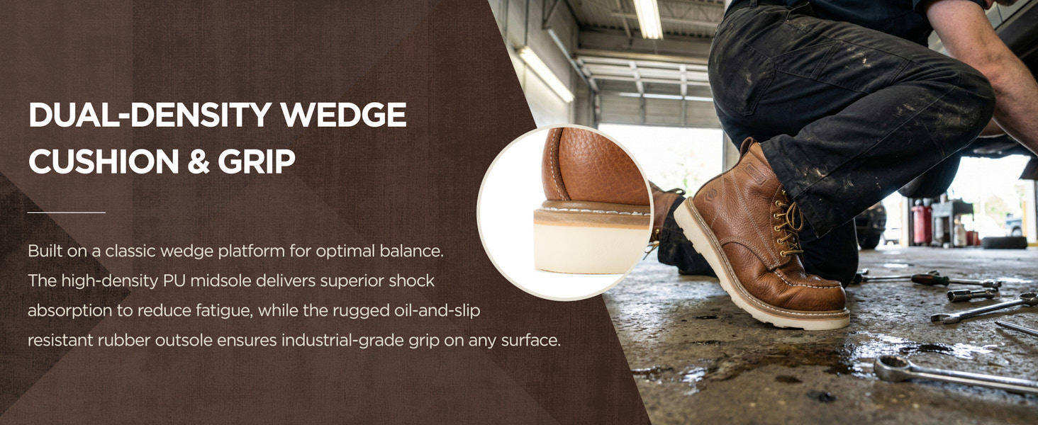 Wedge Slip -Resistant outsole :outperforms other competitors with more flexibility, absorbing more impacts and gives your feet and ankles more protection while working on flat,wet,oily surfaces and loose gravel.