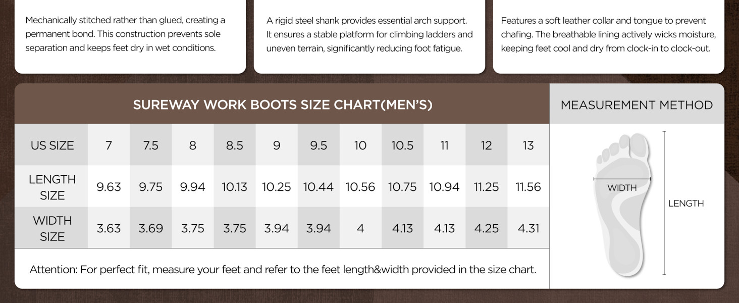surewayworkboots are designed with safety features that protect your feet from various hazards commonly found in work environments: