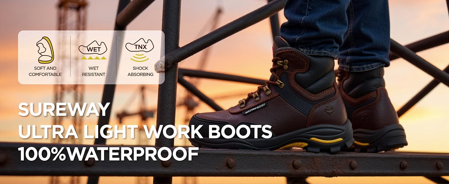 SUREWAY Men's 6" Waterproof Steel Toe Work boots are essential footwear designed to provide protection, comfort, and durability in demanding work environments.