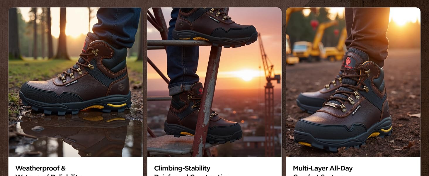 surewayworkboots are designed with safety features that protect your feet from various hazards commonly found in work environments: