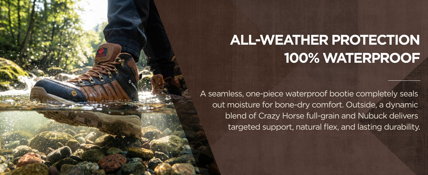 .100% WATERPROOF | SUREWAY Full-Grain Leather Work Boots Advanced waterproof tech paired with waterproof full-grain leather locks out moisture, keeping feet dry and protected in rain or wet conditions—ideal for comfortable work in any environment.