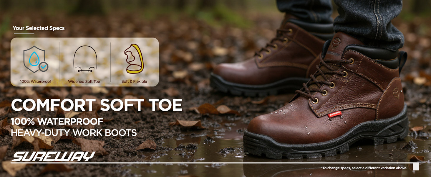 SUREWAY waterproof steel toe work boots for men SW611 crafted with premium quality full grain leather for exceptional performance.