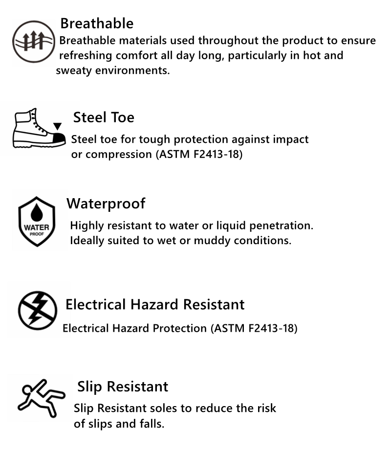 surewayworkboots are designed with safety features that protect your feet from various hazards commonly found in work environments: