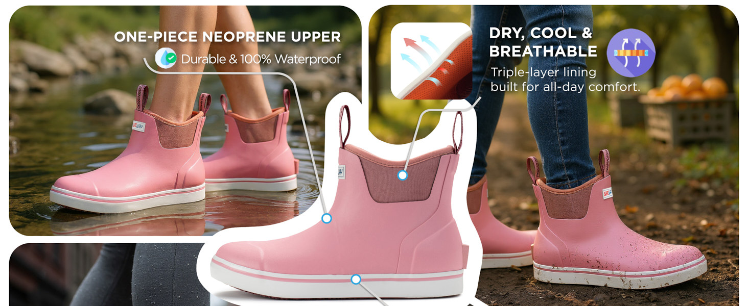 *Ankle-Length Design*: The ankle-length design provides added support and stability, making these boots ideal for navigating slippery surfaces such as boat decks, docks, and rocky shores. They help prevent ankle injuries and provide a secure fit for all-day comfort.